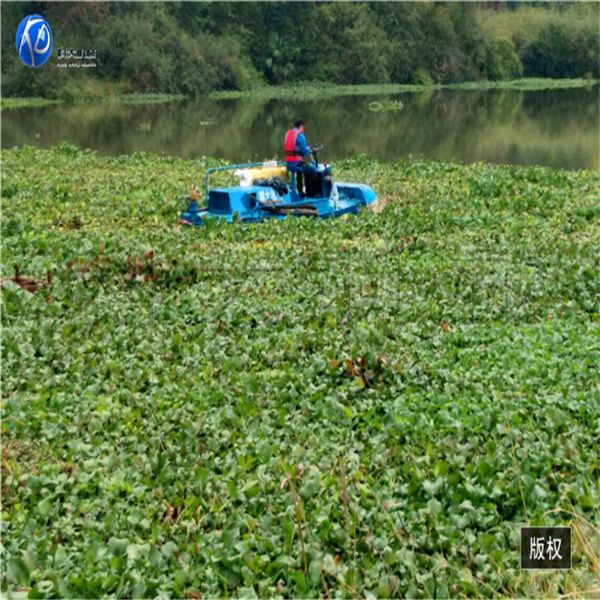 碎草船由船體,動力源、方向器、主傳動軸及其支承軸承、螺旋槳及碎草傳動離合器、螺旋槳、船舵、碎草輪架、碎草輪軸及其支承軸承、碎草輪、側(cè)向及中間別開草器、擋板、主動及被動傘形齒輪等連接組成。船在前進時,碎草輪上的碎草齒與碎草輪架上的互碎齒互相咬合著將溝渠湖泊水面上的雜草雜物碰打咬碎,使之沉入水中或隨水泵排出,從而充分發(fā)揮提水泵的效率,保障受漬或受旱農(nóng)作物的及時排水供水。其結(jié)構(gòu)簡單,操作使用方便。